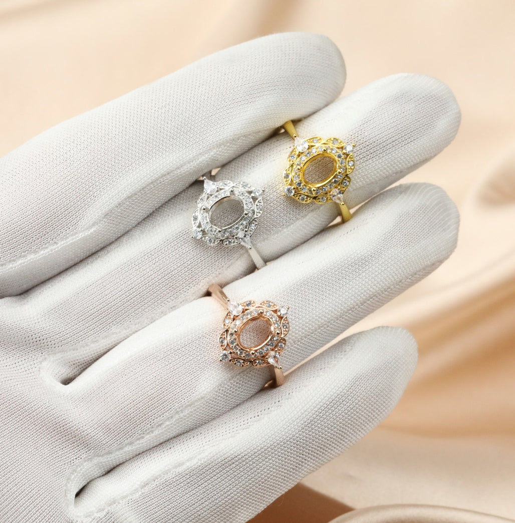 5x7MM Oval Prong Ring. 925 Sterling Silver or Rose Gold Plated Adjustable