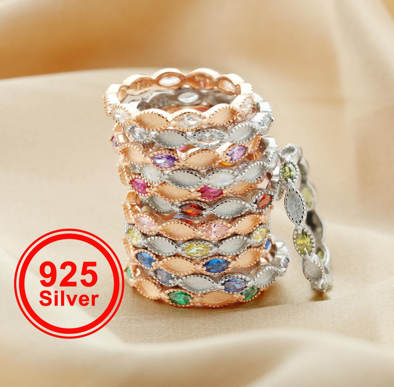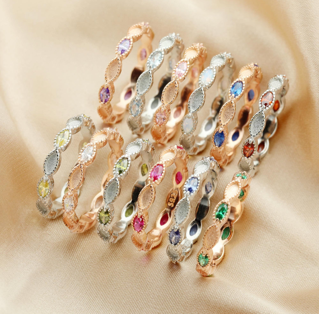 Your choice of .925 sterling silver, rose gold plating over .925 sterling silver, gold plating over .925 sterling silver.